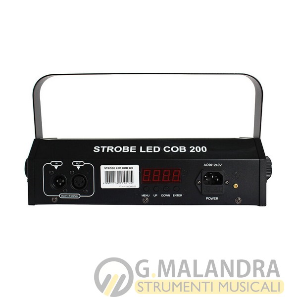 STROBE LED COB 200 utilizza la tecnologia COB per produrre un effetto stroboscopico molto simile a quello prodotto da una lampada alogena. La sua potenza di 200 W è ottenuta da 8 LED COB bianchi da 25 W, oltre al suo controllo DMX avanzato e alla sua scocca in metallo molto robusta che gli consentono di essere utilizzato in applicazioni professionali con efficienza.