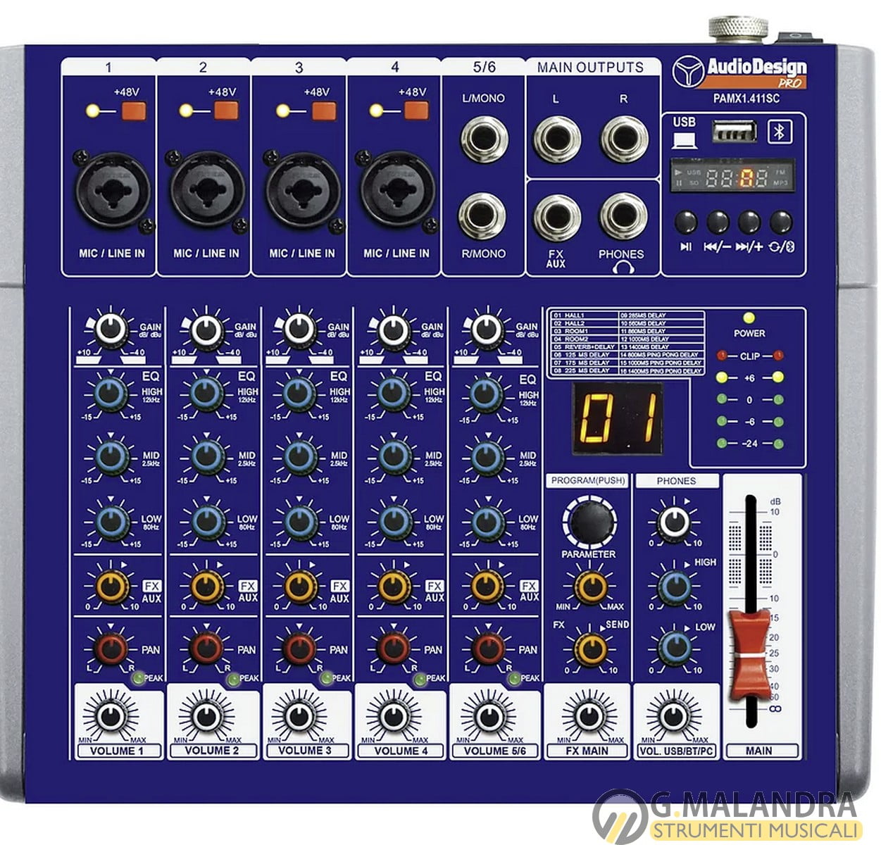 2 – 4 Mono – 1 Canale Stereo- 1 canale USB/BT/PC – 16 effetti con DSP Una serie compatta con prestazioni ed effetti di alto livello, perfetta per il live e versatile per ogni utilizzo. La funzione Sound Card, permette un utilizzo interattivo (IN – OUT) con un PC