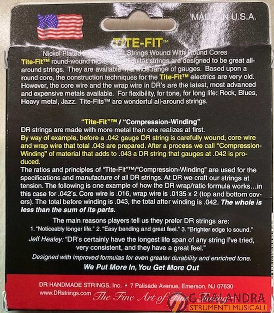 Corde per chitarra elettrica con avvolgimento Nickel Plated (placcato in nickel) su anima rotonda. Le corde per chitarra elettrica Tite-Fit Round-wound Nickel Plated sono state progettate per essere delle ottime corde polivalenti. Sono disponibili in una vasta gamma di calibri. Basate su anima rotonda, le tecniche di costruzione delle corde Tite-Fit sono molto vecchie. Tuttavia, i nostri fili centrali e quelli dell’avvolgimento sono realizzati con i metalli più all’avanguardia e costosi attualmente disponibili. Progettate per una maggiore flessibilità, un miglior timbro e una lunga durata: per il Rock, il Blues, l’Heavy Metal, il Jazz. LeTite-Fit sono corde meravigliose per tutti i generi.