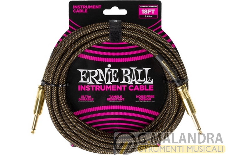 6432 Braided Cables Pay Dirt è il cavo per strumento con tessuto intrecciato di Ernie Ball, dalla lunghezza di 5,5 m e con connettori sbilanciati straight. Grazie alla doppia schermata il braided cable è più resistente, più longevo e garantisce un basso livello di rumore, ideale per il palco o lo studio di registrazione.