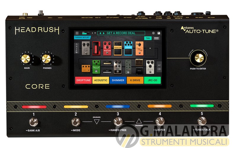 Il processore di effetti per chitarra e voce HeadRush Core è un concentrato di potenza dalle molteplici sfaccettature che dà vita ai suoni della tua chitarra e della tua voce. Dotato di una vasta libreria di effetti per chitarra realistici e reattivi, amplificatori, cabinet ed emulazioni di microfoni, HeadRush Core apre le porte ad un carico di risposte all’impulso praticamente illimitato. Per i cantanti, offre una suite completa di effetti vocali, incluso lo standard del settore Antares Auto-Tune e un looper di alto livello. Tutte queste funzionalità sono guidate da un processore multi-core avanzato, racchiuso in uno chassis in acciaio compatto e robusto e controllato tramite un’interfaccia touch da 7″ di facile utilizzo.