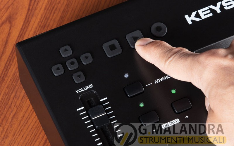 Sul pannello superiore di Keystation 88 MK3 sono presenti pulsanti per la selezione dell’ottava, ruote pitch-bend e modulation, cursore volume, pulsanti di trasporto e tasti di navigazione per riprodurre e registrare con un software DAW senza dover eseguire i comandi da tastiera o trackpad. Keystation 88 MK3 include inoltre ingresso per pedale di sustain per un maggiore feeling in stile pianoforte, ingresso per pedale di espressione e uscita MIDI OUT per il collegamento di synth, drum machine e altro ancora.