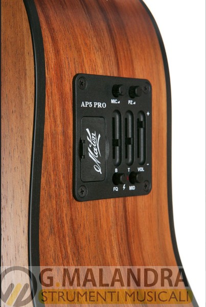 Solid 70. Fondo e fasce in acero della Tasmania, tavola armonica in abete, rinforzi smerlati, manico in acero del Queensland, tastiera e ponticello in ebano striato.