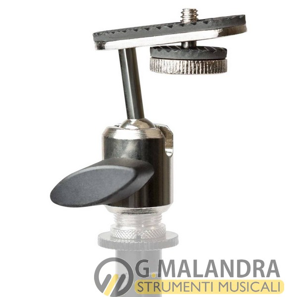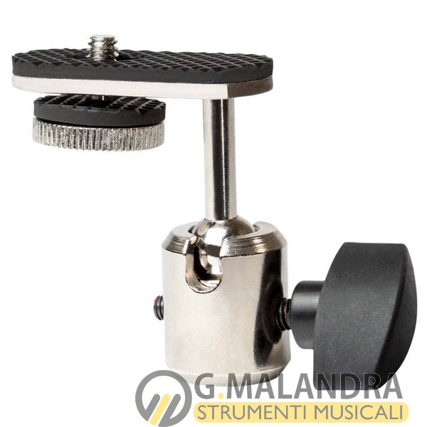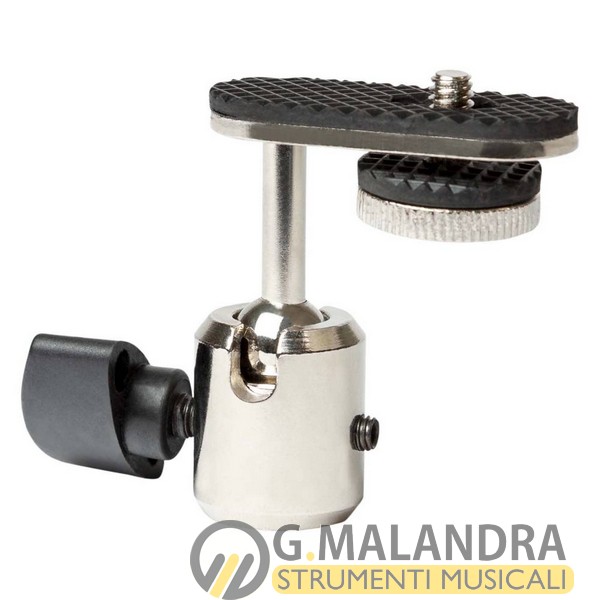 Adattatore universale per videocamere, registratori digitali, “action cameras” ed altri dispositivi con vite 1/4”. Adatto per il montaggio su aste microfoniche con filettatura 5/8”standard. Ampie regolazioni possibili. Disponibile in finitura cromata.