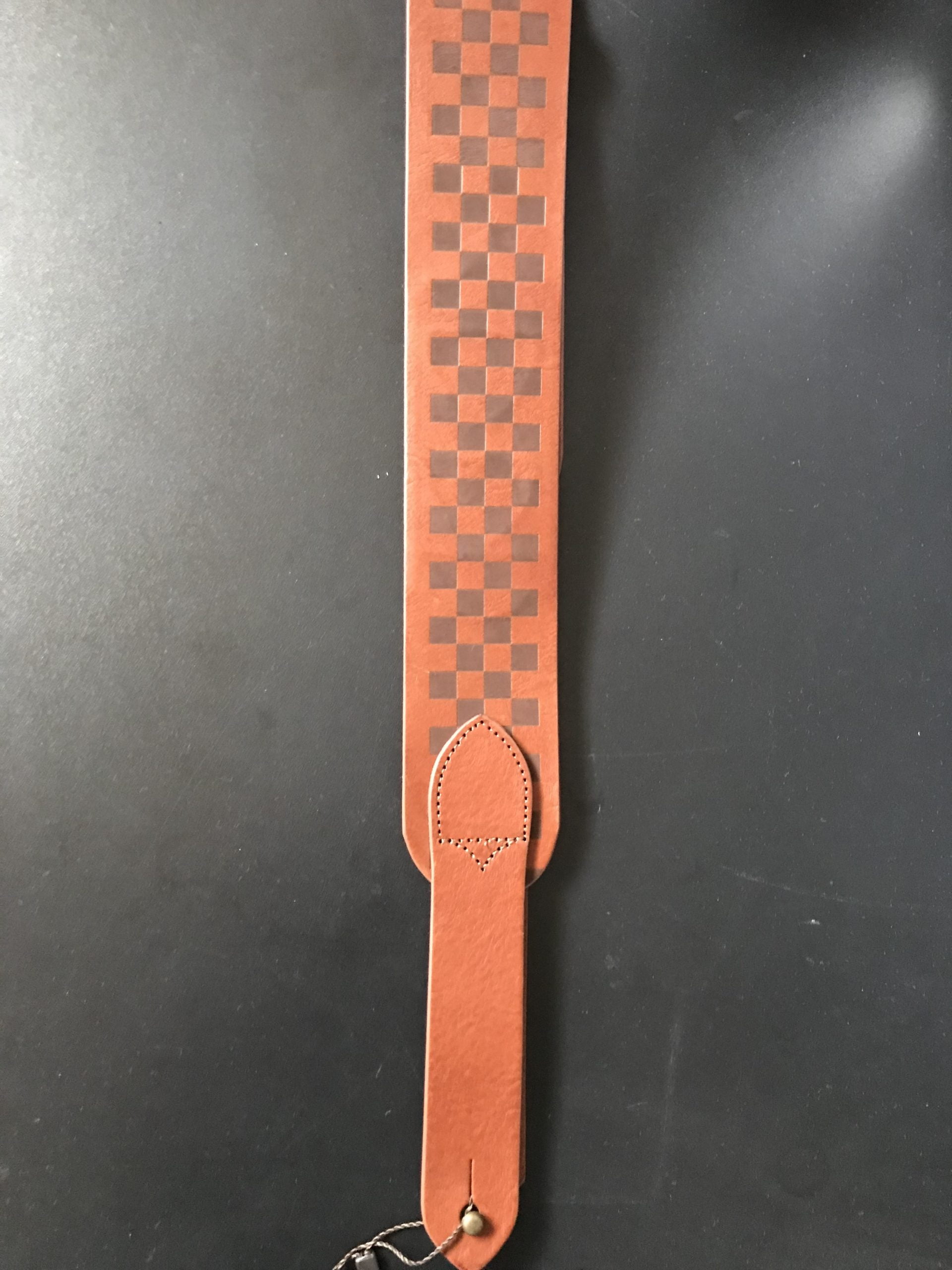 Tutto il cinturino è realizzato in una straordinaria pelle di alta qualità, la superficie con la stampa a scacchiera, ma le linguette terminali e l’interno sono lisce.