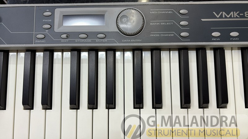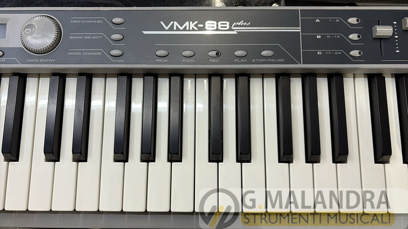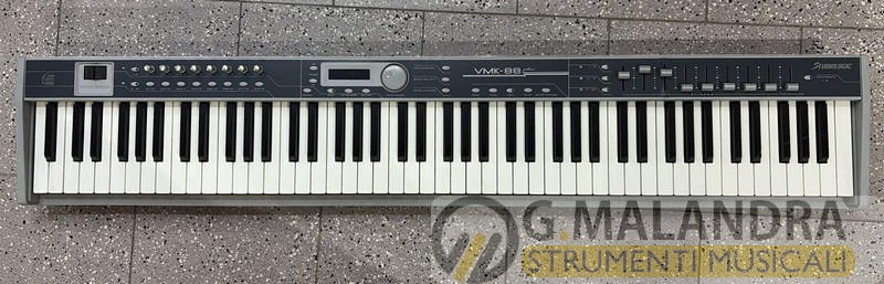 Le tastiere della serie Studiologic VMK sono tastiere controller programmabili a più livelli. La VMK-88 è una master keyboard multilivello programmabile con 88 tasti a dimensione pianoforte e azione semipesata. L’unità dispone di pitch bend, aftertouch, “on the fly” live edit (espressività della funzione editor), potenziometri, pulsanti e cursori assegnabili e 4 ingressi pedale totalmente programmabili. Tra le possibili assegnazioni ci sono 8 potenziometri programmabili X 2 banchi, 8 pulsanti programmabili X 2 banchi, 9 cursori programmabili X 4 banchi, una sezione trasporto programmabile dotata di 5 pulsanti e 4 input a pedale programmabili. Tutto questo per un totale di 77 controlli assegnabili! Un controller con un controllo a 3 pedali: sustain, damper e sostenuto. Con soli 6 kg di peso, la VMK-88 è uno strumento di lavoro ideale per ogni musicista.
